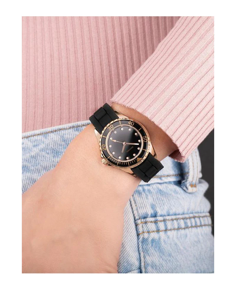 Ladies Sekonda black & rose tone silicone strap watch 4743